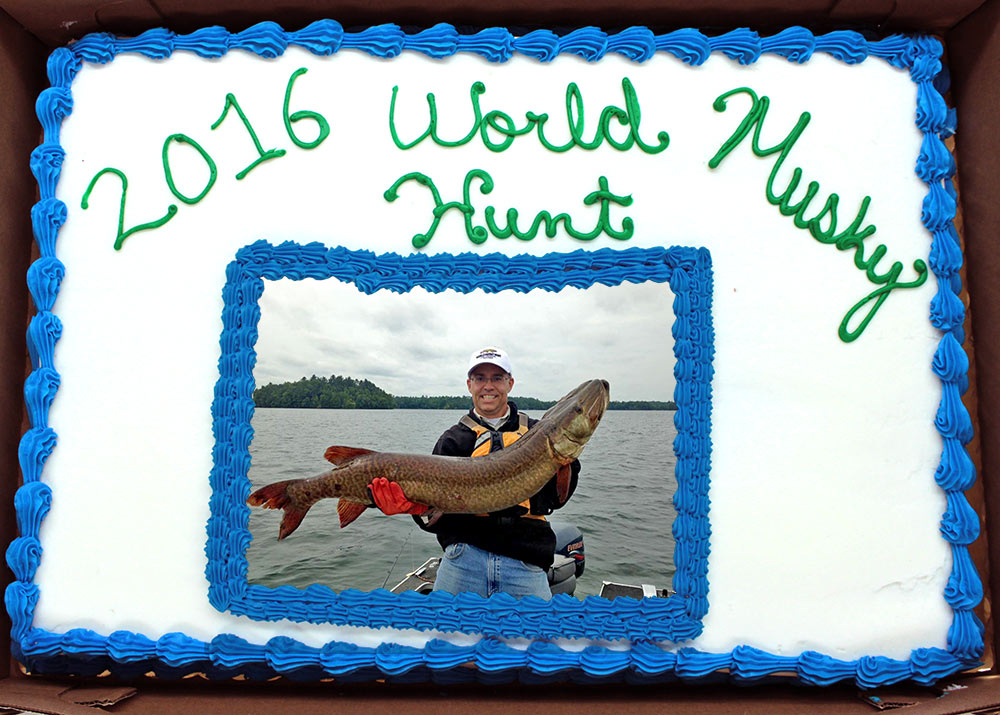 Raffle Meister Extraordinaire Paul Farrow 2016 WMH Comemerative cake featiring Dan Kirk with his 2015 prize-winning 50 3/8-inch musky while being guided by Mike O'Brien Thanks to Our Sponsors! 2016 Honorary Guide Ron Rickman shown here with Ron Rickman jr and Donna Rickman