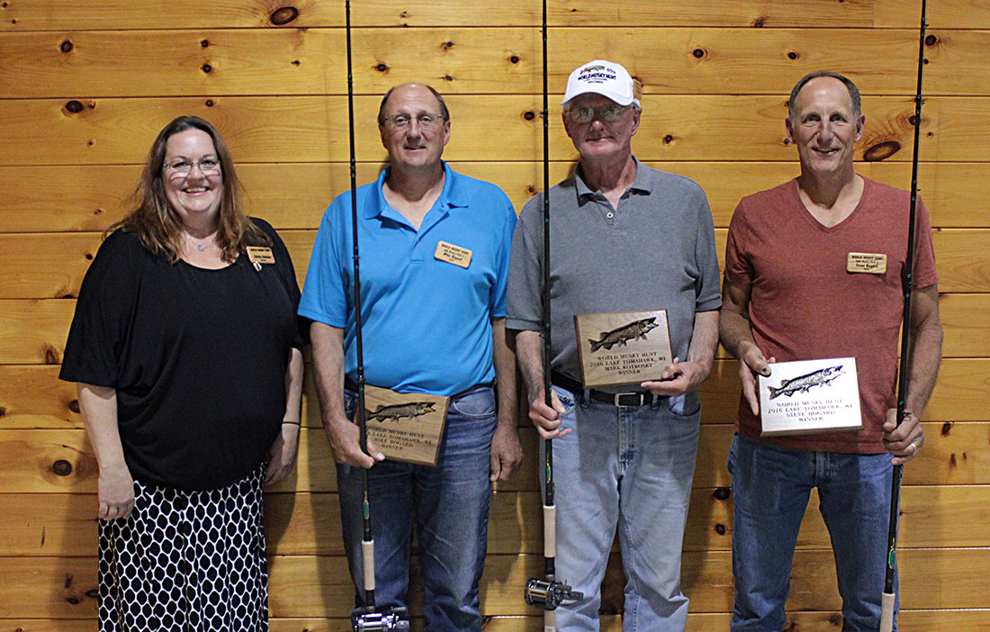 2016 Honorary Guide Ron Rickman shown here with Ron Rickman jr and Donna Rickman 2016 Master Caster 2016 WMH Sportsmanship Award winner Roger Sobota pictured here with WMH Vice President Don Laudubec (left) and 2016 Dead Fish Award winner Chuck Brod