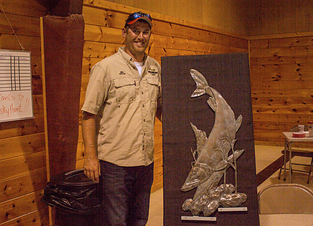 Sue Fritsche receives award for her support of the World Musky Hunt Shore lunch courtesy of Klements Sausage Company Guide Mike Dreissen with his 2017 WMH raffle win Lake Tomahawk welcomes the World Musky Hunt