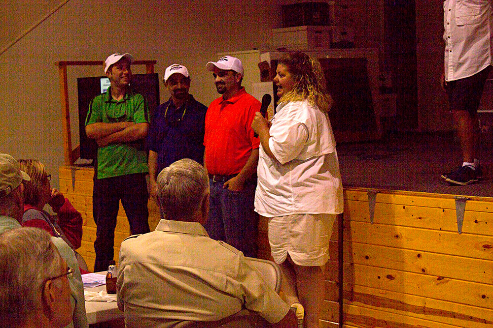 2017 World Musky Hunt Board of Directors Greeter Ruth Glaser introduces the C&R Musky Club Team Greeter Lynsi Waldbogel introduces the St Croix Rods Team Greeter Rhonda Hase introducing the One Shotters Team