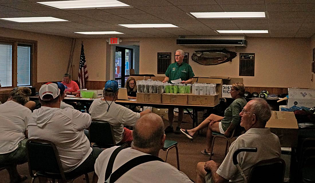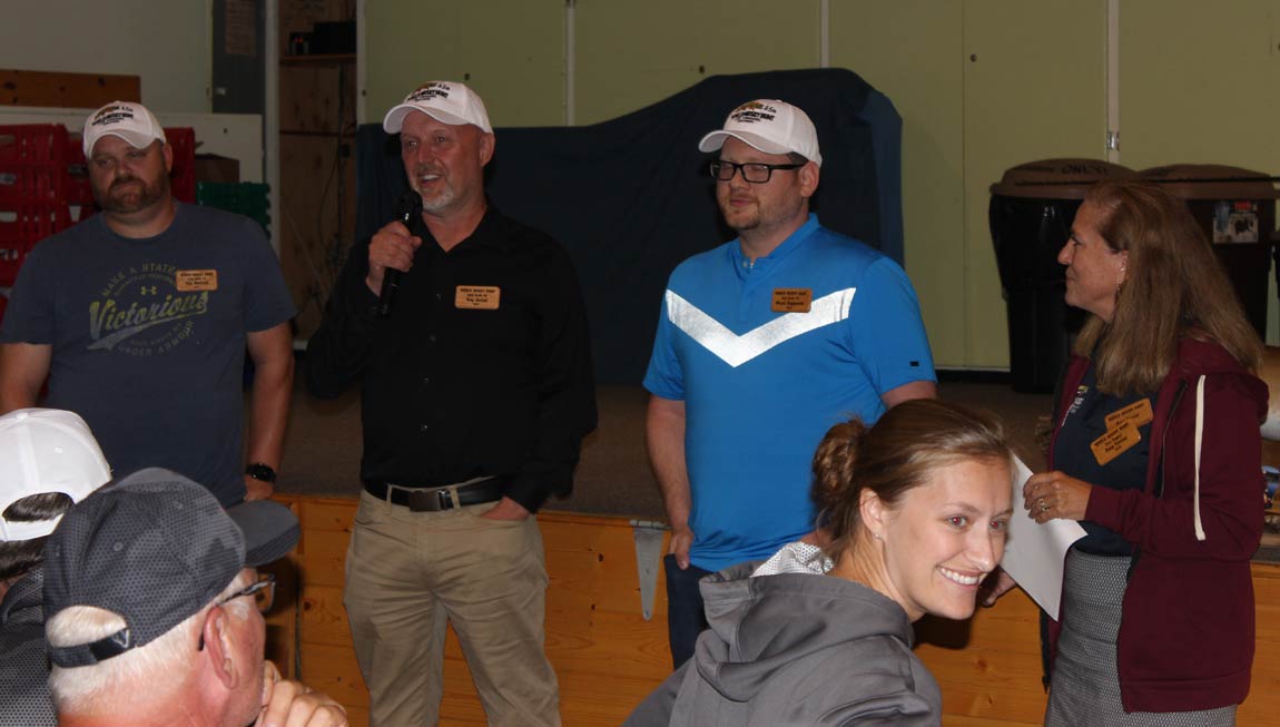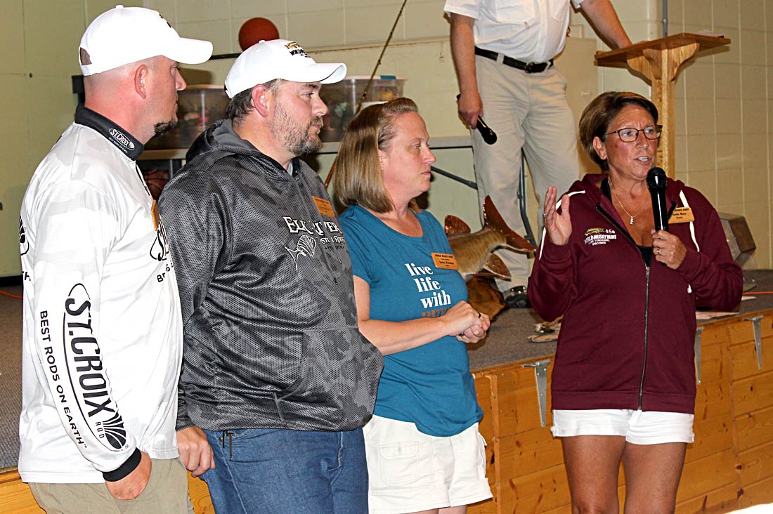 Greeter Jarrett Lone introduces the 2021 Trigs Military Team Greeter, and WMH Board member Junelle Lone introduces the Esox Entourage III Team Greeter Tina Ahrens introduces the C&R Musky Club Greeter Wanda Hase introduces Team Keelin