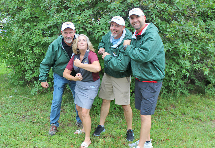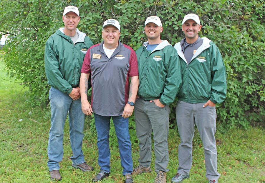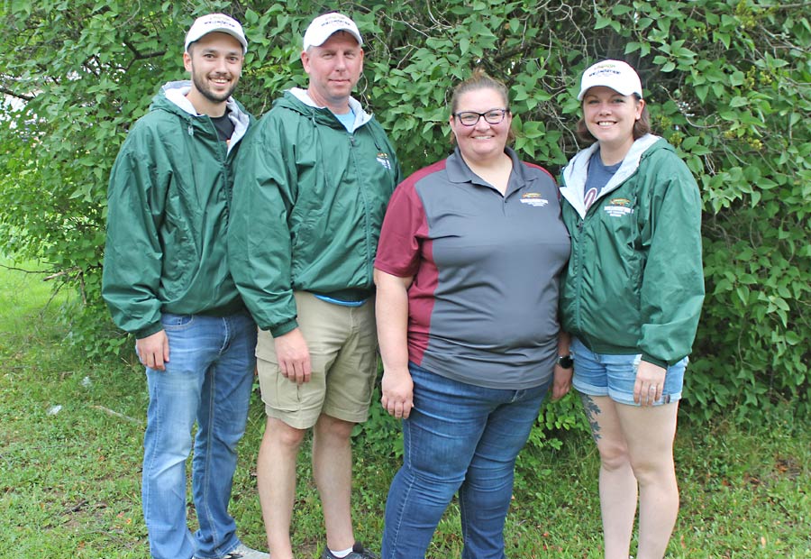 Sportsmans Repair Shop 2023 - Bob Knoll, Randy Lewandowski, Greeter Sally Salber, Amy Weeks