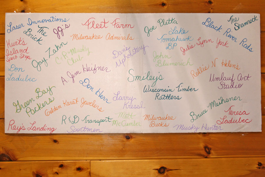 2013 WMH Trophies 2012 Biggest Musky Caught by a Contestant award winner Keith Hanson (left) with Joe Fittante (center) and WMH VP Don Ladubec (right) 2013 WMH Sportsmanship Award winner Theresa Ladubec with fellow Board members Dave Doolittle (left) and Ken McGill Thanks to the 2013 WMH Greeters (from left) Sherri Wegner, Kristin Verhulst, Wanda Hase, Janelle Lone, Angel Steckbauer, Stephanie Sowatzka, Donna Rickman, Greeter co-ordinator Theresa Ladubec