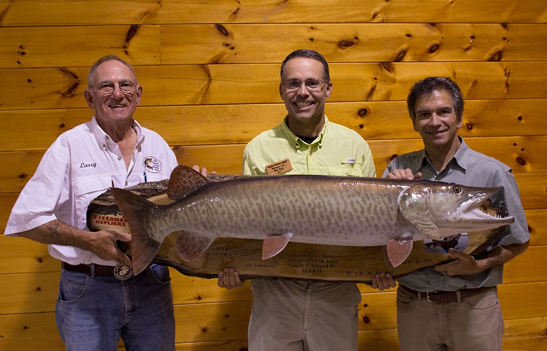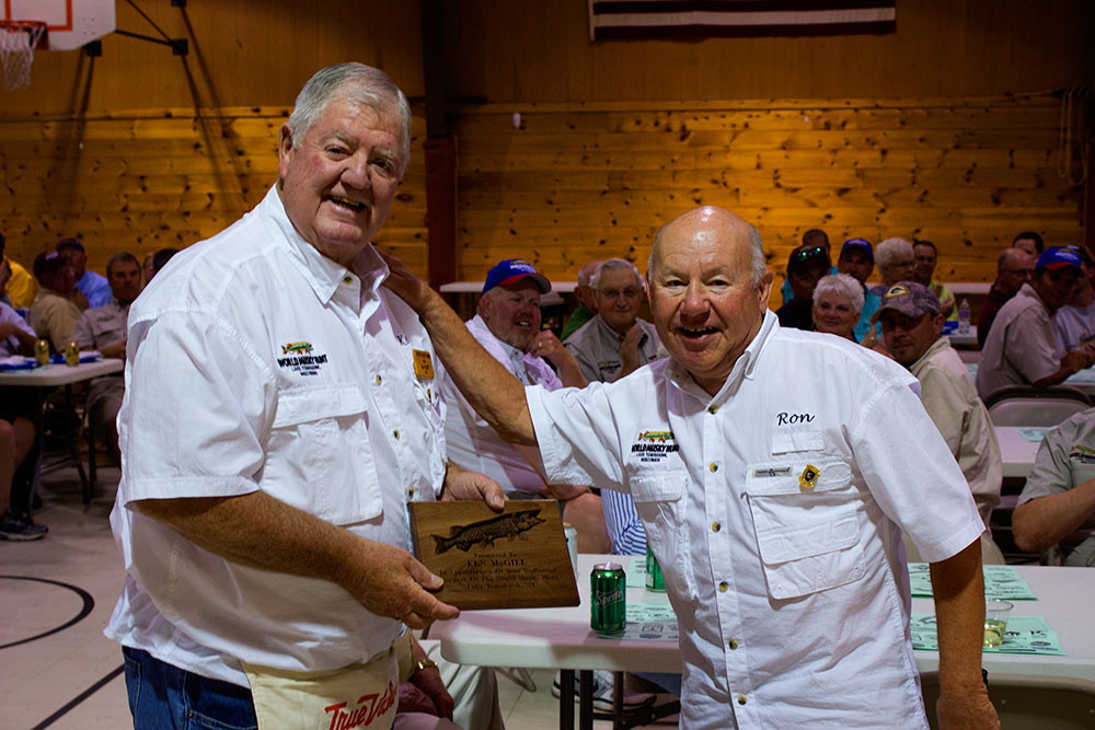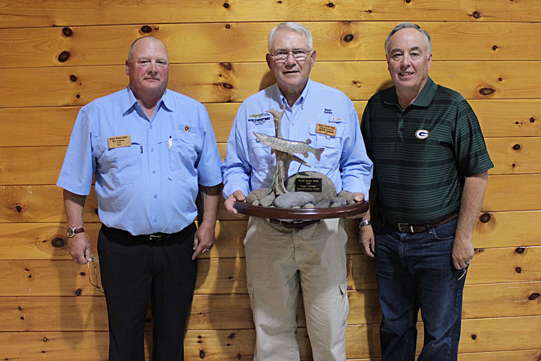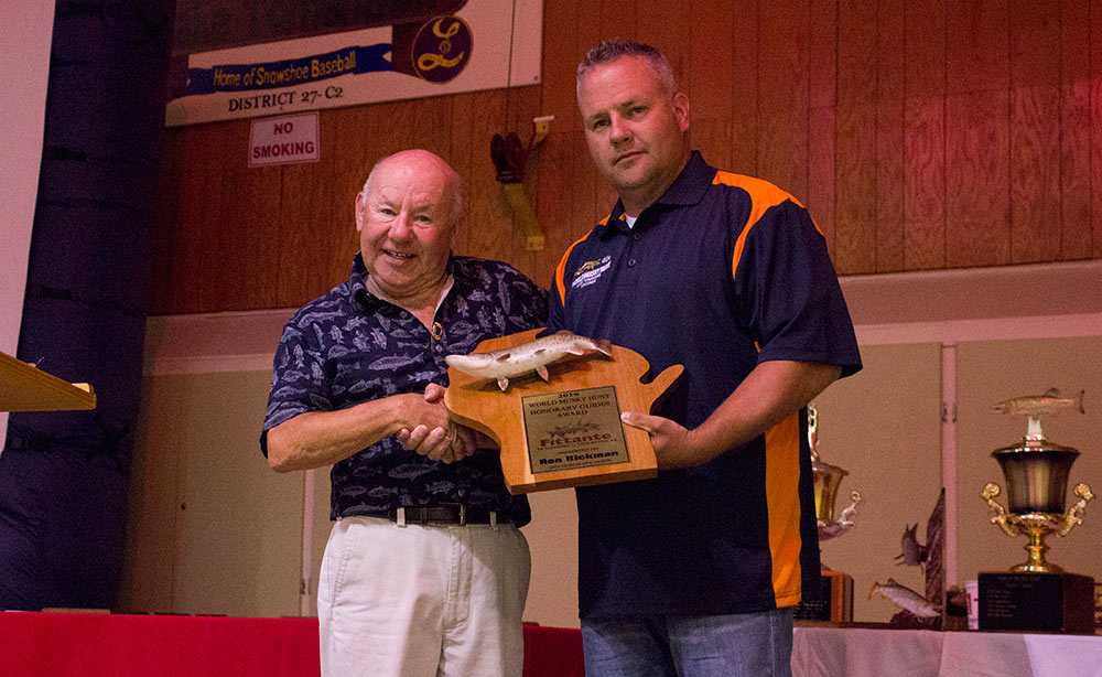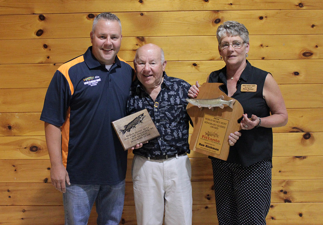 2016 Honorary Guide Ron Rickman shown here with Ron Rickman jr and Donna Rickman 2016 Master Caster 2016 WMH Sportsmanship Award winner Roger Sobota pictured here with WMH Vice President Don Laudubec (left) and 2016 Dead Fish Award winner Chuck Brod