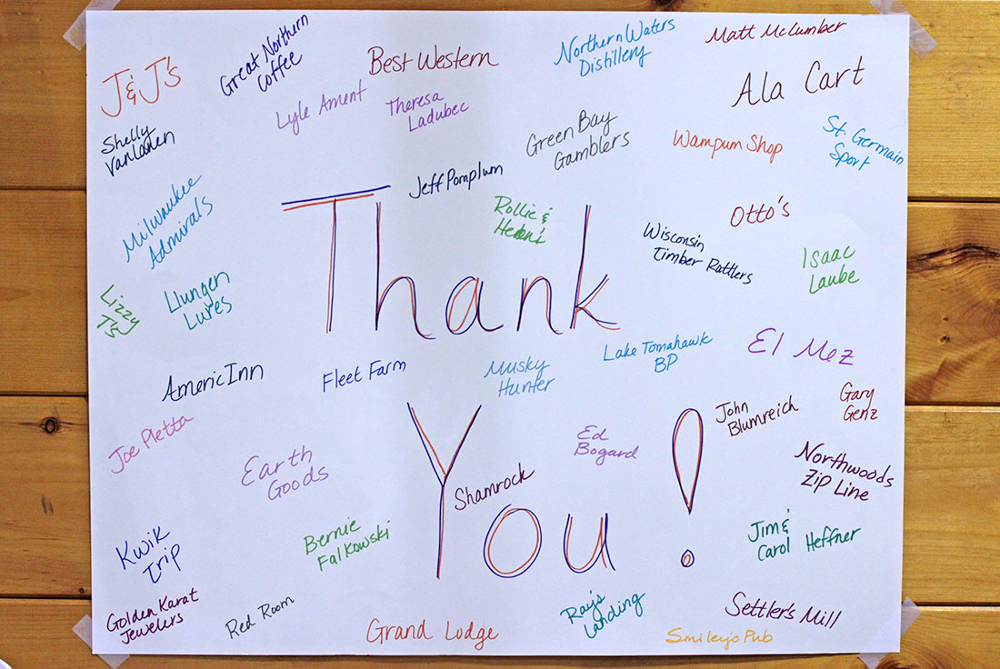 Raffle Meister Extraordinaire Paul Farrow 2016 WMH Comemerative cake featiring Dan Kirk with his 2015 prize-winning 50 3/8-inch musky while being guided by Mike O'Brien Thanks to Our Sponsors! 2016 Honorary Guide Ron Rickman shown here with Ron Rickman jr and Donna Rickman