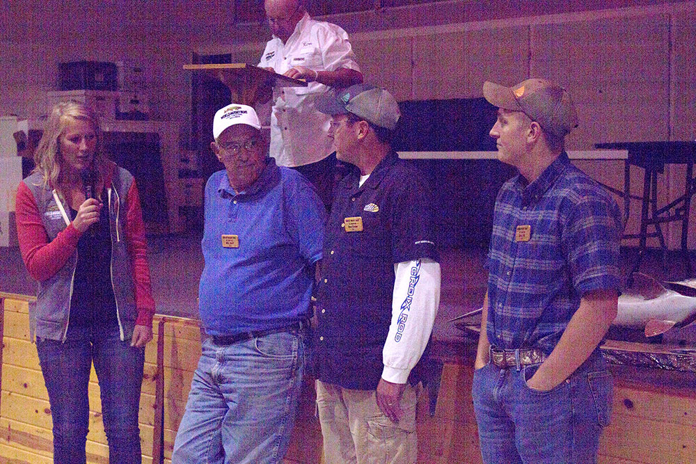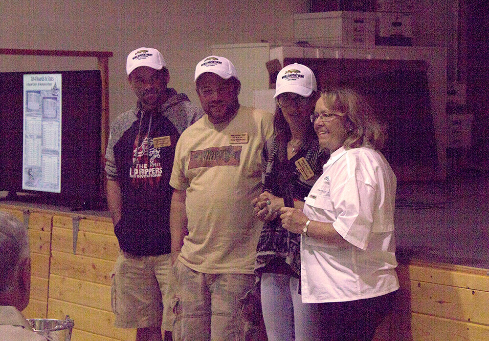 2017 World Musky Hunt Board of Directors Greeter Ruth Glaser introduces the C&R Musky Club Team Greeter Lynsi Waldbogel introduces the St Croix Rods Team Greeter Rhonda Hase introducing the One Shotters Team