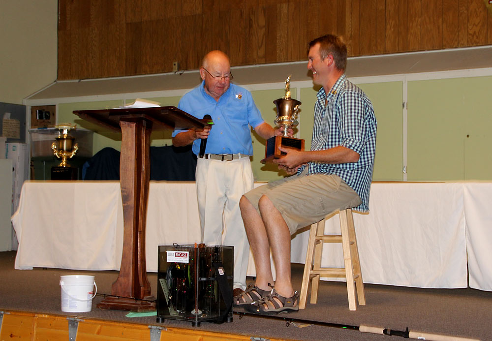 2018 WMH Master Caster Mike Bogard 2017 WMH Largest Fish Caught by a contestant winnner Branden Ahrens shown here with Taxidermist Joe Fittante (left) and 2017 Winning Guide Bruce Meihsner 2018 Peggy Dreissen Sportsmanship Award winner Donna Rickman pictured here with WMH President Ron Rickman 2018 Winning Contestant's Guide John Farrow