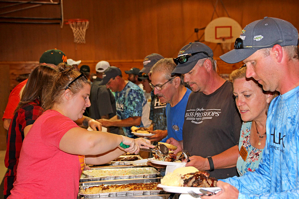 Lake Tomahawk Welcomes the World Musky Hunt WMH contestants checking in Sharing photos of his grandchildren Dinner is Served
