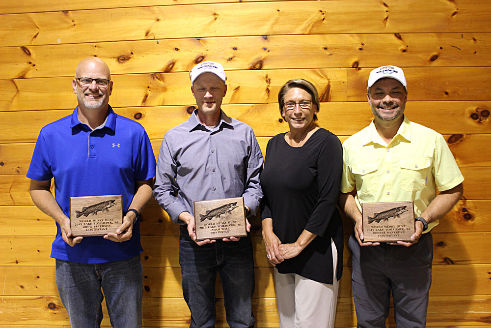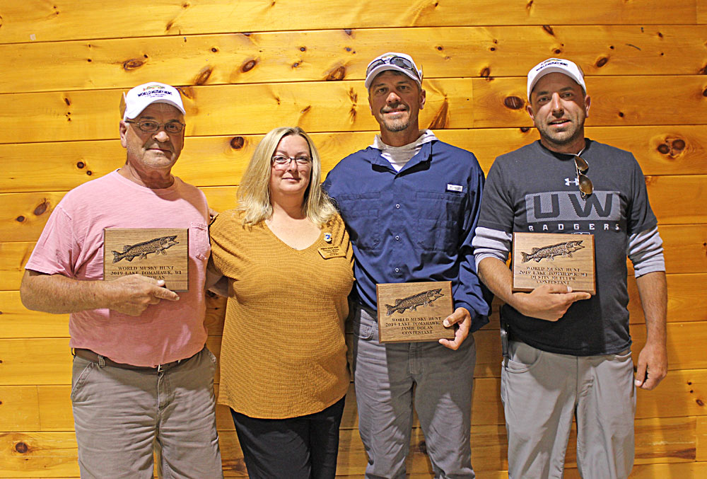 Musky Mike's Meatheads (from left) Michael O'Brien, Benjamin O'Brien, Greeter Julie Steebs, Anthony DeGaetano 2019 WMH Winning Team Kwik Hooks II (from left) Greeter Janelle Lone, Carl Rick, Nick Newman, Lyle Blum 2019 Trig's Military Team (from left) Greeter Jarrett Lone, David Nance, Dale Lone, Joseph Burclaw Esox Entourage II (from left) Duane Dolen