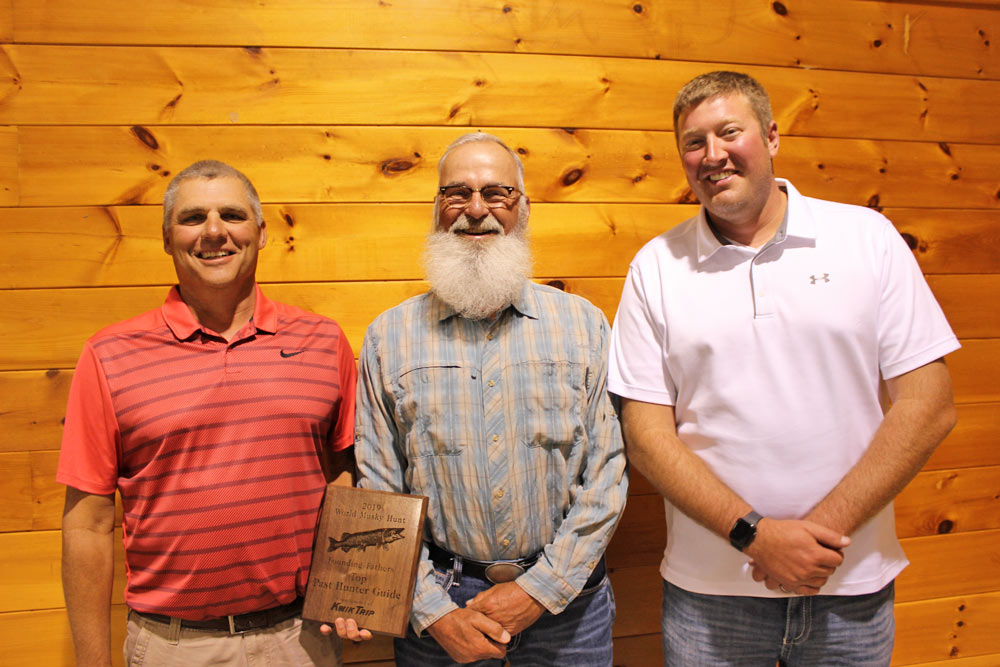 2018 Largest Fish Caught by Josh Scriver pictured here with taxidermist Joe Fittante and 2018 Winning Guide John Farrow 2019 Dead Fish Award winner Tim Wallace 2019 Master Caster Don Laudebec 2019 Winning Past Hunter Josh Scriver