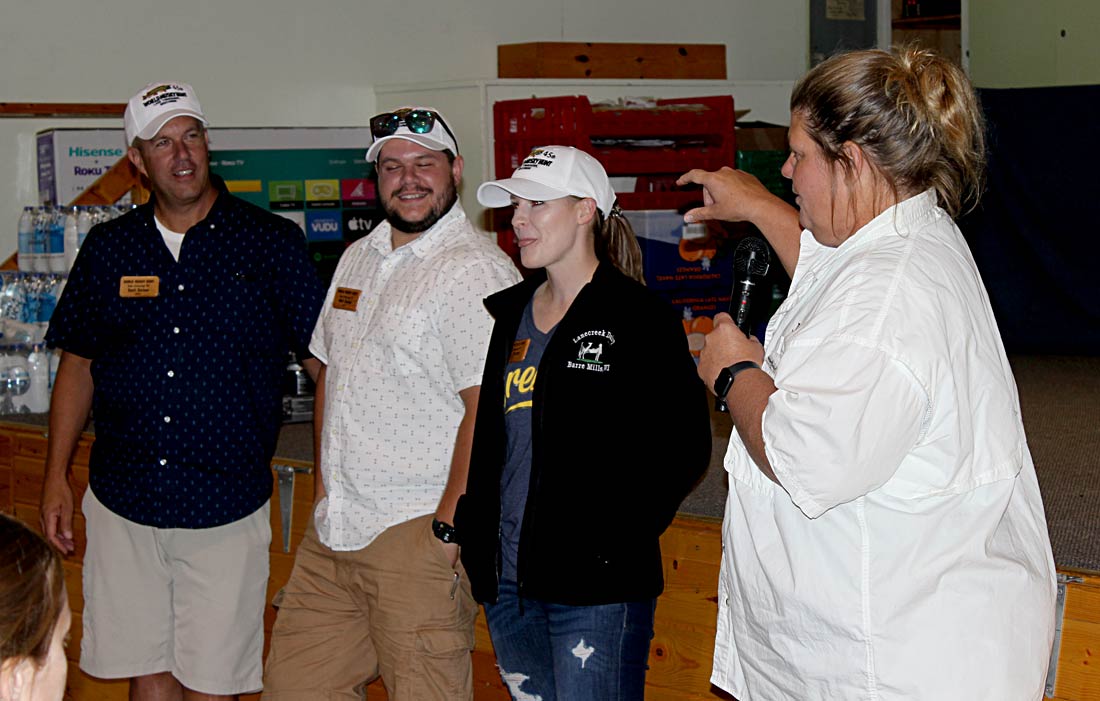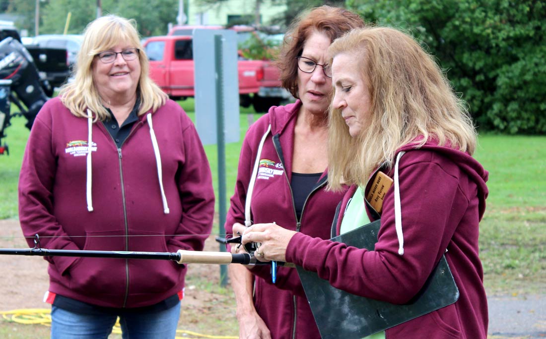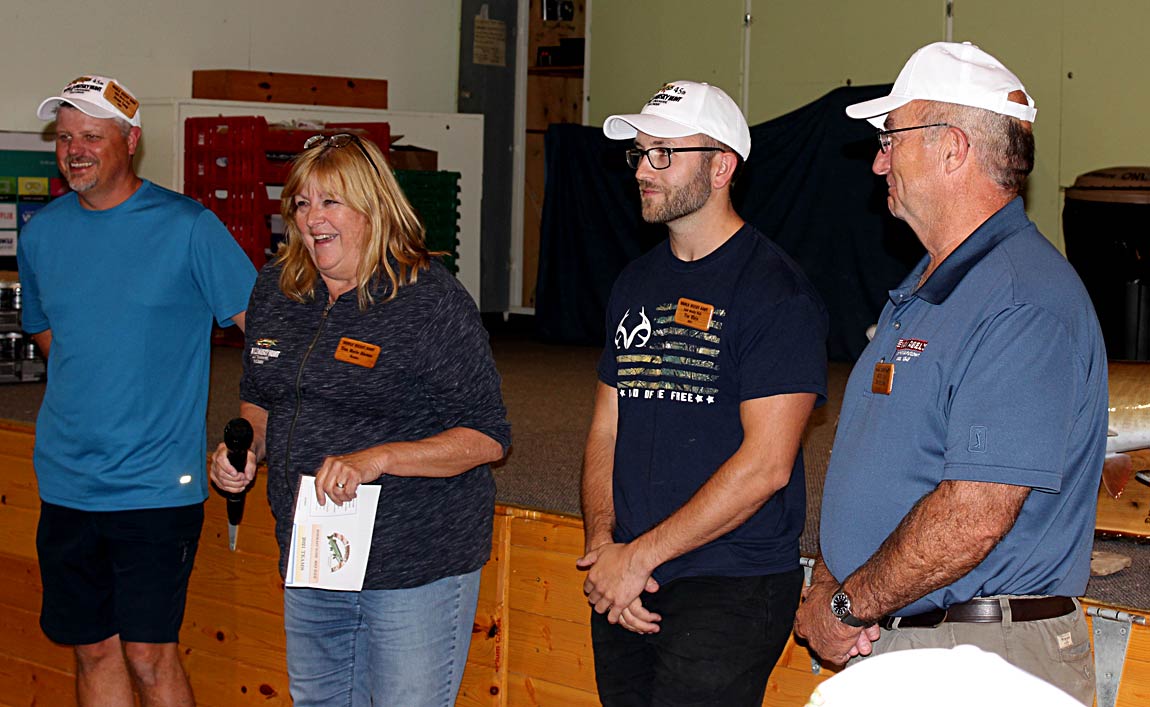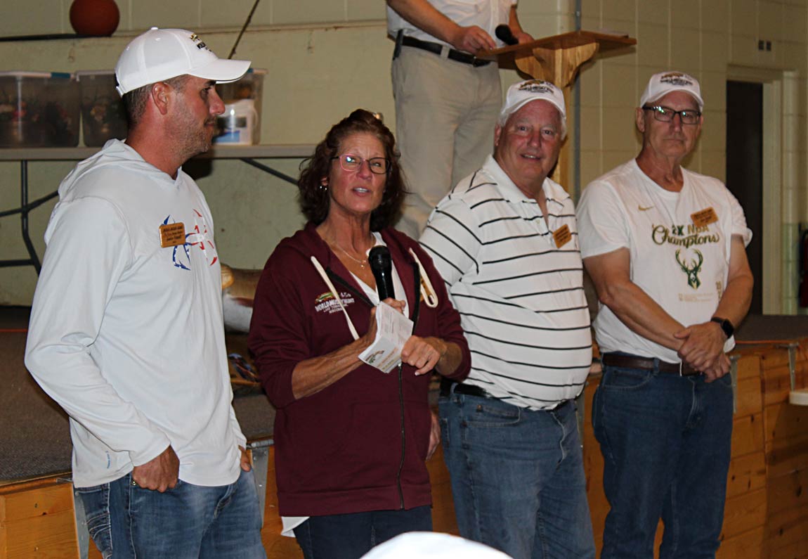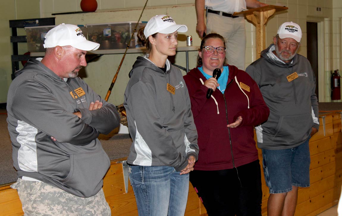 Greeter Jarrett Lone introduces the 2021 Trigs Military Team Greeter, and WMH Board member Junelle Lone introduces the Esox Entourage III Team Greeter Tina Ahrens introduces the C&R Musky Club Greeter Wanda Hase introduces Team Keelin