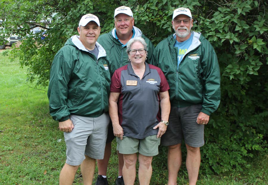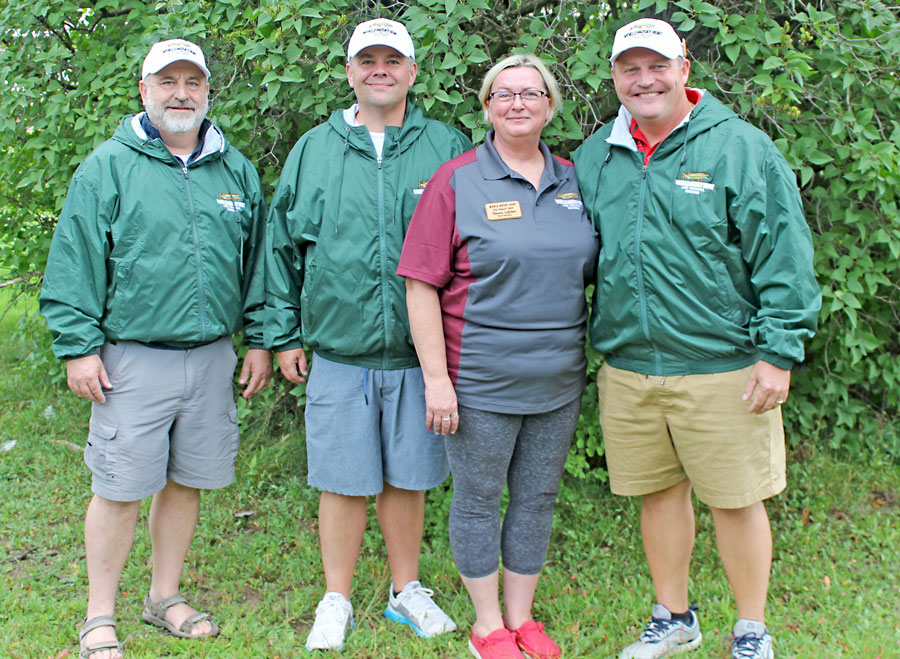 Sportsmans Repair Shop 2023 - Bob Knoll, Randy Lewandowski, Greeter Sally Salber, Amy Weeks